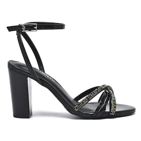 Sandália Via Marte Salto Bloco Tira Strass Holográfica 23-9501 - 35 - Preto