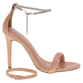 A Sandália Via Marte Salto Fino Alto Feminina Rosê apresenta salto alto fino e bico arredondado. O calcanhar é fechado e possui uma tira delicada revestida com strass. Sobre os dedos passa uma tira confortável, deixando o pé amostra.