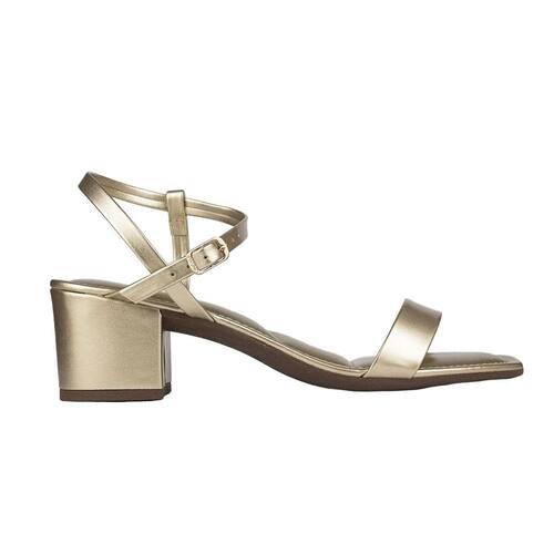 Essa sandália da Via Uno tem um design sofisticado. Possui uma tira frontal minimalista e um salto bloco médio, proporcionando equilíbrio entre elegância e conforto.