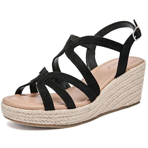 Luoika Sandálias femininas de largura larga, plataforma com tira no tornozelo, bico aberto, alpargata, salto alto, sandálias femininas concisas casuais de verão.
