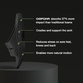 - Tecnologia OOfoam – Nossa revolucionária tecnologia OOfoam absorve 37% mais impacto do que as espumas de calçados tradicionais para reduzir o desconforto em seus pés, articulações e costas. Além disso, a espuma de célula fechada é lavável na máquina e projetada para minimizar o odor.