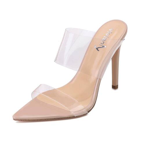 Sandálias de salto fino transparente com tira transparente salto alto stiletto mules para mulheres