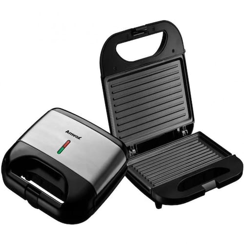 Especificações Técnicas: Marca: Amvox Modelo: AMS 500 Tipos de placas: Grill Tipo de alimentação: Elétrica Potência: 750W Com superfície antiaderente: Sim Lâmpada com indicação de funcionamento: Sim Lâmpada com indicação de lanche pronto: Sim Alça para transporte: Sim Trava de segurança: Sim Comprimento do cabo de energia: 0,70 m Certificado Homologado pela Inmetro Número: BRA21/00058