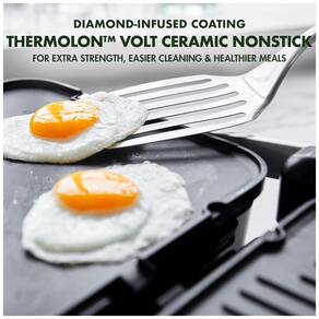 Possui Thermolon Volt, um revestimento antiaderente de cerâmica especialmente projetado para suportar a tensão dos aparelhos modernos este antiaderente de cerâmica com infusão de diamante é extra resistente, limpa facilmente e torna qualquer refeição mais saudável