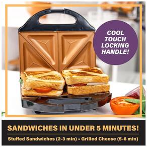 Sanduicheira antiaderente Gotham Steel para 2 fatias, com aquecimento rápido, limpeza fácil e alça com trava Cool Touch.Funciona como grill