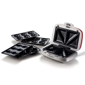Para uma festa, um lanche ou um dia especial, com a nova Sanduicheira 3 em 1 Retrô Party Time você pode preparar uma mesa cheia de delícias! Deliciosos muffins, donuts irresistíveis e sanduíches recheados. Um único produto, simples e rápido de usar com 3 placas antiaderentes e intercambiáveis. Divirta-se na cozinha e crie muita coisa boa!