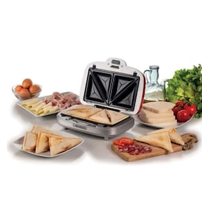3 placas antiaderentes, removíveis e intercambiáveis: Sim (sanduiches, donuts e muffins)