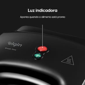 Além disso, a sanduicheira possui indicação luminosa, enrolador de fio, base antiderrapante e proteção contra superaquecimento, oferecendo praticidade, segurança e durabilidade.