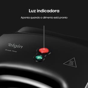 Além disso, a sanduicheira possui indicação luminosa, enrolador de fio, base antiderrapante e proteção contra superaquecimento, oferecendo praticidade, segurança e durabilidade.
