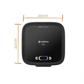 Sanduicheira Elétrica Cadence Click | SAN400A Sanduicheira Click tem um design único e formato inovador. É a companheira bancada para fazer de tudo um pouco!Não precisa tirar da tomada.Botão Liga/Desliga com LEDs indicadores Pés firmesA sanduicheira não tomba. Chapas Antiaderentes + Profundas80%* + ESPAÇO mais versátil. Chapas +SIMPLES DE LIMPARSuperior grill, Inferior LISINHA! Com a Click, preparar sanduíches deliciosos é so o começo! Dica de uso:Apenas antes do primeiro uso, unte levemennte as chapas com um pouco de manteiga, óleo ou gordura, feche o aparelho e aguarde esquentar (cerca de 5 min). Retire-o da tomada, espere esfriar e limpe.Pronto, agora é só usar normalmente quando quiser. *Imagens meramente ilustrativas. Modelo SAN400-127Tensão127VPotência750WConsumo0,75 KW/hDimensões [LxAxP]215x78x223mmGarantia (meses)12Peso1,310 KgCódigo de barras7898700218817