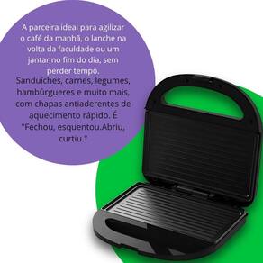 Palavras-chave: Sanduicheira Cadence SanduGrill SAN230: Agilidade e Sabor para Sua Cozinha Introdução: Transforme suas refeições com a Sanduicheira Cadence SanduGrill SAN230, a parceira perfeita para quem busca praticidade e sabor no dia a dia. Chega de perder tempo na cozinha Com ela, você prepara lanches e grelhados deliciosos em minutos, seguindo a filosofia Fechou, esquentou. Abriu, curtiu. Ideal para qualquer momento, do café da manhã ao jantar. Sobre a Cadence: Qualidade e Inovação para o Seu Lar: Há mais de duas décadas, a Cadence tem sido uma presença constante nos lares brasileiros, sinônimo de inovação, design e funcionalidade em eletroportáteis. Desde 1999, a marca se dedica a levar mais praticidade e alegria para as atividades diárias, conquistando a confiança dos consumidores com produtos de custo-benefício imbatível e alta performance. Escolher Cadence é investir em um dia a dia mais fácil e gostoso. Design Inteligente e Funcionalidades Essenciais: A Sanduicheira Cadence SanduGrill SAN230 foi projetada para oferecer uma experiência culinária superior, unindo desempenho e segurança: Chapas Antiaderentes de Alta Performance: Diga adeus aos alimentos grudados e à dificuldade na limpeza. As chapas com revestimento antiaderente garantem que seus sanduíches e grelhados sejam preparados sem aderência, facilitando o manuseio e tornando a limpeza rápida e simples. Aquecimento Potente e Rápido 750W : Equipada com 750W de potência, a sanduicheira atinge a temperatura ideal em poucos minutos. Isso significa mais agilidade no preparo, entregando sanduíches crocantes e dourados e grelhados no ponto certo em tempo recorde. Grelhamento Duplo e Uniforme: Com aquecimento simultâneo nas duas chapas, seus alimentos são grelhados por completo, de forma uniforme e eficiente, garantindo resultados saborosos e consistentes a cada uso. Segurança e Praticidade no Uso: A alça com trava assegura que a sanduicheira permaneça fechada durante o preparo, e as luzes indicadoras de funcionamento sinalizam quando o aparelho está ligado e pronto para uso. Além disso, os pés antiderrapantes garantem total estabilidade na bancada, e o porta-fio facilita o armazenamento, mantendo sua cozinha sempre organizada. Benefícios para o Seu Dia a Dia: Refeições Rápidas e Descomplicadas: Ganhe tempo precioso em sua rotina agitada, preparando lanches e refeições completas em instantes. Versatilidade Culinária: Prepare desde sanduíches quentinhos até pequenos cortes de carne, legumes e hambúrgueres, explorando diversas possibilidades com um único aparelho. Limpeza Sem Esforço: A tecnologia antiaderente das chapas torna a limpeza uma tarefa rápida e prática, liberando mais tempo para você. Compacta e Fácil de Guardar: Seu design otimizado permite que ela se adapte a qualquer espaço na cozinha, mesmo em ambientes menores, e o porta-fio ajuda a manter tudo arrumado. Confiabilidade da Marca: Conte com a qualidade e a de um produto Cadence, desenvolvido para durar e facilitar sua vida. Conclusão: A Sanduicheira Cadence SanduGrill SAN230 é o eletrodoméstico que faltava na sua cozinha para unir agilidade, sabor e conveniência. Seja qual for a voltagem da sua residência disponível em 110V e 220V , este aparelho é a escolha ideal para quem busca otimizar o tempo sem abrir mão de refeições deliciosas. Adquira já a sua e transforme a forma como você se alimenta Ficha Técnica Completa: Modelo: SAN230 Disponível em SAN230-127 para 110V e SAN230-220 para 220V Marca: Cadence Potência: 750