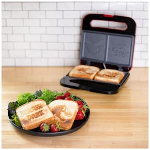 O Jurassic Park Grilled Cheese Maker da Uncanny Brands transforma o preparo de queijo grelhado em uma experiência épica. Este panini press e grill compacto é ideal para qualquer espaço, permitindo preparar duas porções de uma vez e ocupando pouco espaço na bancada. O design clássico inspirado em Jurassic Park adiciona um toque de aventura à sua cozinha, com as placas duráveis que imprimem a silhueta de um T-Rex e o icônico logotipo do Jurassic Park em ambos os lados do seu sanduíche prensado.