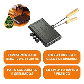 A Sanduicheira Forma Dupla é a aliada perfeita para trazer mais praticidade ao preparo de lanches e receitas na cozinha. Fabricada em ferro fundido, proporciona excelente desempenho no aquecimento, permitindo preparar sanduíches e outros alimentos com eficiência e sabor.