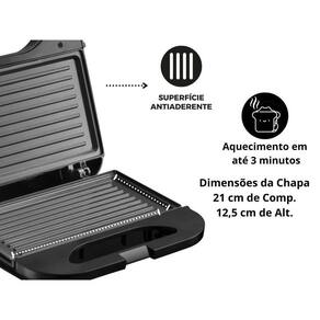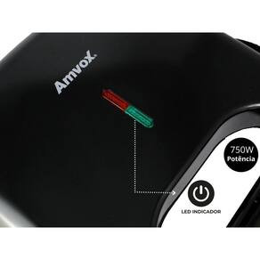 A sanduicheira ams 370 black amvox é uma opção prática e rápida para que o seu café da manhã seja feito por uma ótima opção de misto quente, como também no preparo de lanches em casa, deixando a superfície dos preparados mais crocantes e saborosos. com as placas antiaderentes dos dois lados, ela ainda oferece a possibilidade de preparar carnes, linguiças, entre outros sem grudar. Com essa sanduicheira, belíssima, você terá redução do uso de gordura no preparo de carnes e uma ótima opção de preparar lanches e carnes em lugares que não possuem fogão. A sanduicheira amvox possui um tamanho compacto, facilitando na hora de guardar, sendo ideal para o seu dia a dia. Surpreenda-se com a qualidade desse produto e faça bom proveito.