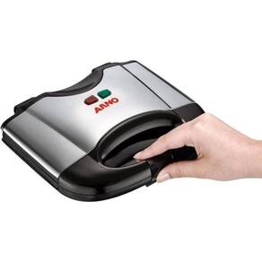 Placas antiaderentes que facilitam o preparo e a limpeza. Função grill para sanduíches, paninis e carnes. Armazenamento vertical para economizar espaço. Alça isolada com trava de segurança. Luzes piloto de funcionamento e pré-aquecimento. Acabamento em inox.Termostato regulável