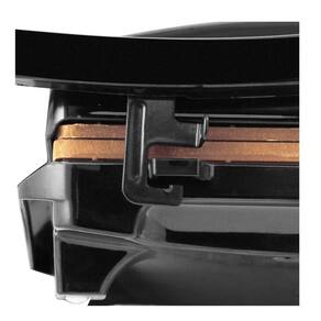 Sanduicheira e Grill 2 em 1, Revestimento Maxx Gold, Bandeja coletora de gordura removível, Placas antiaderentes onduladas, Acabamento em Aço Inox cor Gold.Termostato regulável