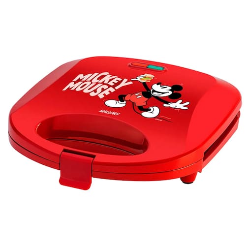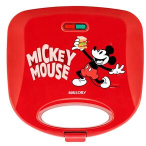 Sanduicheira Mallory Kids Red com placas antiaderentes, luzes LED indicadoras, alça com toque frio, trava de segurança e pés antiderrapantes.Funciona como grill
