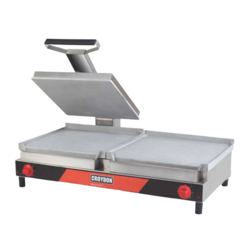 A Sanduicheira Elétrica Conjugada com Prensa Grande em Alumínio Liso SCGL Croydon 220v é ideal para pequenos estabelecimentos como lanchonetes, cafés e outros comércios, prepara deliciosos lanches de forma rápida e eficiente tais como misto quente, pão na chapa e baguetes são algumas das especialidades que podem ser feitas com esse produto. A Sanduicheira Elétrica Conjugada com Prensa Grande em Alumínio Liso SCGL Croydon 220v possui 5500W de potência e gabinetes em aço inox e placas de alumínio fundido que proporcionam um grelhado mais rápido, essa sanduicheira ocupa pouco espaço e ainda conta com chapa lisa e seletor de temperatura com seis diferentes opções, para que os alimentos não passem do ponto, possui capacidade para até 24 sanduíches.