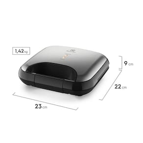 Tecnologia de aquecimento rápido, deliciosos sanduíches prontos em menos tempo; 2 Placas de aquecimento antiaderentes, aquece o lanche por igual nos dois lados sem grudar na superfície; Design sofisticado, acabamento em aço inox escovado, mescla beleza e qualidade para a sua cozinha; Luzes âmbar indicativas, indicam se o produto está ligado e na temperatura ideal para consumo; Alça com isolamento térmico, mais segurança durante o manuseio, evita acidentes; Armazenamento vertical, compacto, cabe em qualquer lugar;Funciona como grill