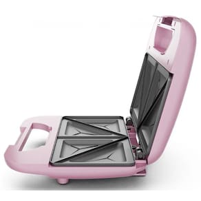 Sanduicheira Britânia Luxx Pink com design inovador, chapas antiaderentes, capacidade para 2 sanduíches, trava de fechamento e base antiderrapante.Funciona como grill