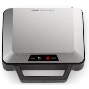Potência 1000W. Chapas antiaderentes (superior ondulada e inferior lisa). Botão On/Off com luz indicadora de funcionamento. Alça isotérmica. Porta-fio na base. Pés reforçados. Base estável.Funciona como grill