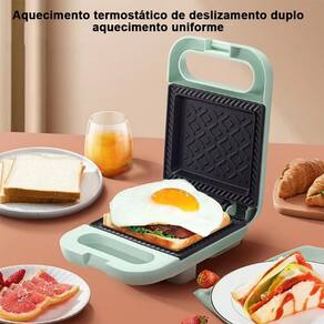 A Sanduicheira Elétrica Portátil é a solução perfeita para preparar lanches rápidos e deliciosos a qualquer hora do dia. Com um design compacto e moderno na cor verde claro, ela combina praticidade com estilo, sendo ideal para uso doméstico ou em ambientes de trabalho. Com 500W de potência, esta sanduicheira aquece rapidamente e oferece desempenho eficiente para preparar sanduíches crocantes e uniformemente tostados. Características Principais: Potência de 500W: Garante aquecimento rápido e eficiente, permitindo preparar lanches em poucos minutos. Revestimento Antiaderente: As placas internas possuem revestimento antiaderente, facilitando a limpeza e evitando que os alimentos grudem. Design Compacto e Portátil: Leve e fácil de transportar, é ideal para uso em qualquer lugar, desde cozinhas pequenas até escritórios. Indicador de Funcionamento: Luz indicadora que mostra quando o aparelho está ligado e pronto para uso, garantindo segurança e praticidade. Fechamento Seguro: Sistema de trava que mantém as placas bem ajustadas durante o preparo, garantindo que os sanduíches sejam tostados de maneira uniforme. Fácil Armazenamento: Compacta e com possibilidade de armazenamento na posição vertical, economizando espaço na cozinha. Especificações Técnicas: Potência: 500W Voltagem: 220V Revestimento: Placas com revestimento antiaderente Peso: 0,650KG Cor: Verde Claro Benefícios: Praticidade no Dia a Dia: Prepara sanduíches de maneira rápida e eficiente, ideal para lanches rápidos. Facilidade de Limpeza: Revestimento antiaderente que facilita a limpeza após o uso. Design Elegante: A cor verde claro adiciona um toque de modernidade e estilo à sua cozinha. Versatilidade: Perfeita para preparar uma variedade de sanduíches e outros lanches, como torradas e paninis. Inclui na Embalagem: 1 Sanduicheira Elétrica Portátil 1 Manual de Instruções A Sanduicheira Elétrica Portátil é uma excelente opção para quem busca praticidade e eficiência na preparação de lanches. Compacta, fácil de usar e com um design charmoso, ela se destaca como um utensílio indispensável para qualquer cozinha moderna. Marca: Não Informado Ean: 7893934876840