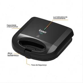 Sanduicheira elétrica Sumay Cusine SM-SP01, 750W, ideal para lanches rápidos e saudáveis. Possui revestimento antiaderente, trava de segurança, base antiderrapante e alça isotérmica.Funciona como grill