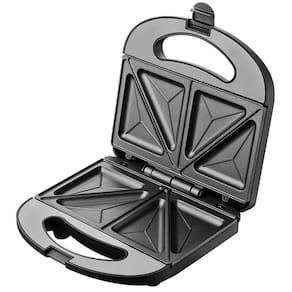 Sanduicheira Grill Cadence Ellegance Black com 750W de potência, placas antiaderentes onduladas, indicadores luminosos de funcionamento e porta-fio.Funciona como grill
