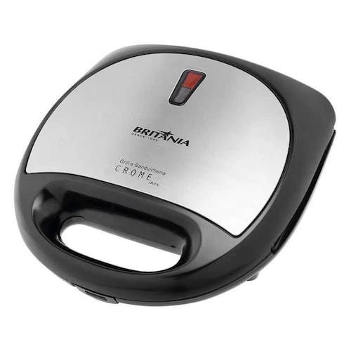 Sanduicheira Grill Britânia Crome Inox com chapas antiaderentes e onduladas, 750W de potência, luz indicadora de funcionamento, design em inox e pode ser guardada na posição vertical.Funciona como grill