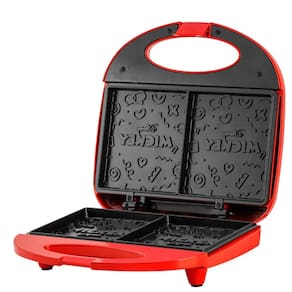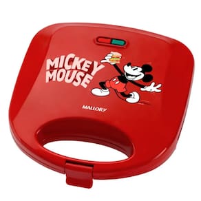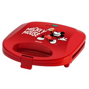 Design temático do Mickey Mouse, placas personalizadas que marcam o rosto do Mickey nos alimentos, placas antiaderentes, aquecimento rápido, tamanho compacto, alça com trava de segurança, pés antiderrapantes.Funciona como grill