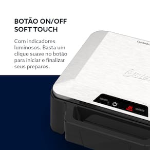 Design exclusivo Oster®: Elegância e robustez com acabamento em aço inox escovado, ideal para cozinhas modernas. Alta potência de 1000W: Preparo rápido e eficiente de sanduíches, waffles, omeletes e muito mais. Chapas profundas com tripla camada antiaderente: Mais espaço, aquecimento uniforme e limpeza facilitada. Botão ON/OFF Soft Touch com luz indicadora: Controle intuitivo e seguro com apenas um clique. Alça com toque frio e fecho robusto: Segurança reforçada durante o uso e armazenamento Chapa superior estriada: Marcas de grelha irresistíveis para um toque profissional nos seus lanches. Formato quadrado e base firme: Ideal para acomodar receitas maiores com estabilidade. Versatilidade na cozinha: Prepare mais de um sanduíche por vez ou explore novas receitas com excelentes resultados.