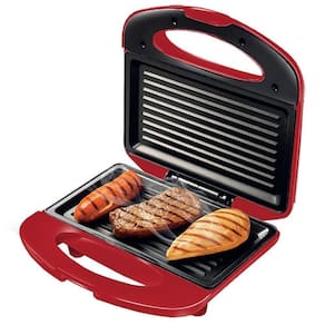 Sanduicheira Mondial S-19 Premium, Grill, Antiaderente, 800W, Vermelho - 220V Algumas pessoas optam por ter uma dieta mais saudável, livre de gorduras e frituras. Uma boa maneira de preparar alimentos mais leves e menos prejudiciais à saúde é grelhando as carnes, ao invés de fritá-las. Usando o Grill e Sanduicheira Mondial Red Premium S19, essa tarefa fica muito mais fácil. Especificações Técnicas: Marca: Mondial Modelo: S-19 Premium Cor: Vermelha Voltagem: 220V Selo Inmetro Tipo de Selo Inmetro: Segurança Compulsório Potência: 800W Consumo: 0,80Kw/h Grelhas duplas antiaderentes Prepara grelhados e sanduiches Trava de fechamento Lampadas piloto Garantia: 12 meses pelo fabricante Itens Inclusos: 1 Sanduicheira Mondial S-19 Premium, Grill, Antiaderente, 800W, Vermelho - 220V