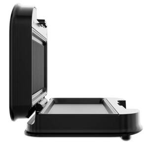 Sanduicheira Britânia Quadratt Grill 750W com design moderno, chapas antiaderentes (superior tipo grill e inferior lisa), trava de fechamento, base antiderrapante e luzes indicadoras de funcionamento e aquecimento.Funciona como grill