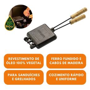 Sanduicheira Forma Simples Ferro Fundido Com Cabo de Madeira FS 75.2 Santana