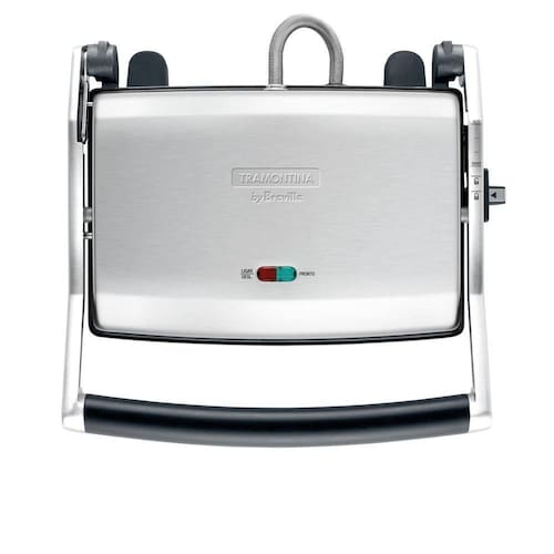 Sanduicheira Tramontina By Breville Express com chapa superior flutuante, altura ajustável, trava de armazenamento e chapas antiaderentes. Ideal para uso doméstico.Funciona como grill