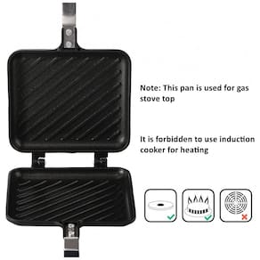 Sanduicheira em liga de alumínio com revestimento antiaderente. Ideal para preparo de sanduíches grelhados, paninis, waffles, churrasco e bifes. Alça em plástico isolante térmico com anel O-ring e trava. Fixações com parafusos duplos. Não compatível com fogões de indução.Funciona como grill