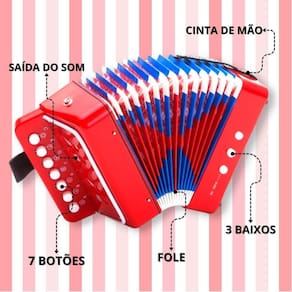 Loja oficial da europiosanfona mini acordeon infantil brinquedo 3 baixos 7 teclasSomos uma das lojas com mais variedades de brinquedos no paísNa europio você encontra diversos brinquedos diferentes, de alta qualidade e com o selo do inmetro, trazendo segurança e qualidade em todos os nossos produtosPrezamos pela qualidade de nossos produtos, por isso todos os produtos são testados e conferidos antes do envioTodas nossas fotos e vídeos são reais, tiradas por nossa equipe buscando passar maior transparência para nossos clientes.= = = = = = = = = = = = = = = = = = = = = = = descrição = = = = = = = = = = = = = = = = = = = = = = = a sanfona de brinquedo com 3 botões de baixo e 7 teclas na parte superior é um instrumento divertido e compacto para as crianças brincarem de músicos. Com seu design encantador, essa sanfona é perfeita para crianças que desejam explorar a música de maneira criativa. os 3 botões de baixo fornecem uma linha de baixo simples e rítmica, permitindo que os pequenos músicos adicionem uma base sólida às suas composições. As 7 teclas na parte superior oferecem uma variedade de notas e acordes, permitindo que a criança crie melodias simples e experimente diferentes combinações sonoras. a alça de mão de couro sintético proporciona conforto e facilidade de manuseio para as pequenas mãos. Feita de couro sintético durável, a alça garante que o instrumento seja resistente e possa ser transportado com segurança. embora seja uma versão de brinquedo, essa sanfona é capaz de produzir sons encantadores, permitindo que as crianças explorem a expressão musical de forma lúdica. É um instrumento divertido que estimula a criatividade, a coordenação motora e desperta o interesse pela música desde cedo.Função:- aprender a tocar sanfona- aprender notas músicais- 3 botões embaixo- 7 botões encimaO que você vai receber em sua casa conteúdo da embalagem - 1 sanfona infantil de brinquedoMedidasAltura: 17 cmLargura: 17,5 cmComprimento: 12 cmMaterial: plástico não tóxico Idade recomendada:Recomendável para crianças maiores de 3 anos.Inmetro: ce-bri/brics 00001-13Nm 300/2002= = = = = = = = = = = = = = = = = = = = = = = = = = = = = = = = = = = = = = = = = = = = = = = = = = = = =Observações:O valor anunciado é referente a uma unidade;Após a confirmação do pagamento, o envio será realizado em até 1 dia útil;Esta loja possui mais de 1.000 brinquedos diferentes, basta acessar a pagina da loja e conferir.P: quando meu produto será postadoR: a postagem é feita em até 24h após a confirmação da compraP: comprando hoje, quando recebo o produtoR: após a compra você receberá a nota em seu endereço eletrônico.= = = = = = = = = = = = = = = = = = = = = = = = = = = = = = = = = = = = = = = = = = = = = = = = = = = = =Caso tenha mais alguma dúvida faça sua pergunta para nós Marca: Europio