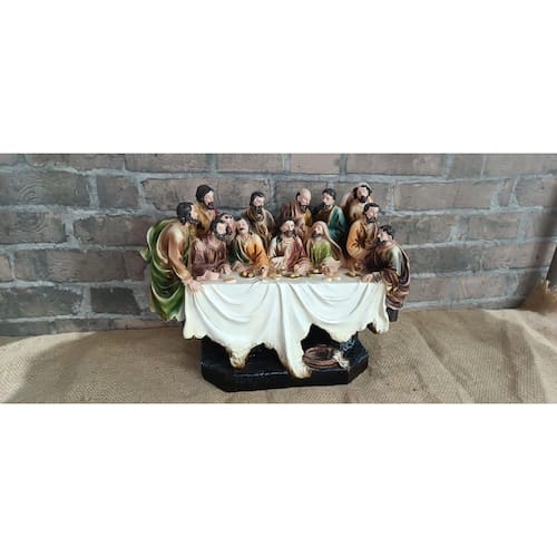 Enriqueça o ambiente natalino com a majestosa Santa Ceia de Natal em Resina Colorida - Mesa Grande de 48 cm, uma peça imponente que traz a simbologia da última ceia de Jesus com detalhes vibrantes. Este item é perfeito para revendedores que desejam oferecer uma decoração religiosa de alta qualidade e grande apelo visual para a época natalina. Detalhes do Produto: Material: Feita em resina resistente, com acabamento detalhado e duradouro que mantém o brilho e a cor ao longo dos anos. Dimensões: Com 48 cm de comprimento, este modelo grande é ideal para compor altares, mesas e prateleiras, tornando-se o ponto central da decoração. Design Rico em Cores e Detalhes: A cena inclui Jesus e seus doze discípulos, com destaque para as feições detalhadas e as vestimentas coloridas, criando uma atmosfera de autenticidade e realismo. Versatilidade Decorativa: Adequada para ambientes internos, como salas de estar, aparadores e altares, integrando-se perfeitamente a decorações natalinas e religiosas de grande impacto. Benefícios: Apelo Espiritual e Emocional: A Santa Ceia é uma representação poderosa da fé cristã, perfeita para clientes que buscam uma decoração de Natal com significado e tradição. Durabilidade e Estilo: Feita em resina de alta qualidade, esta peça é durável, mantendo-se intacta e bela ao longo dos anos. Produto de Alto Valor para Revendedores: Seu tamanho expressivo e o acabamento colorido chamam a atenção de clientes que procuram uma peça especial e exclusiva para as festas de fim de ano. A Santa Ceia de Natal em Resina Colorida - Mesa Grande de 48 cm é uma peça indispensável para revendedores que desejam oferecer produtos que combinam fé e estética. Com alto apelo decorativo, é uma escolha ideal para compor o portfólio de Natal e aumentar as vendas com um produto que inspira e encanta.