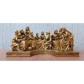 Material: Feita em resina durável, com um acabamento dourado que adiciona brilho e elegância, destacando a peça em qualquer ambiente. Dimensões: Com 23 cm de comprimento, o tamanho compacto é ideal para mesas, altares e aparadores, criando uma decoração de Natal impactante sem ocupar muito espaço. Design Rico e Detalhado: Esta representação da Santa Ceia destaca Jesus e os doze discípulos em uma cena detalhada, com um toque dourado que confere majestade e sofisticação. Cada figura foi esculpida com precisão, capturando gestos e expressões de forma refinada. Versatilidade na Decoração: Perfeita para ambientes internos, esta peça se adapta bem em salas de estar, altares, mesas decorativas e outros locais que precisam de um toque especial para as festas de fim de ano.
