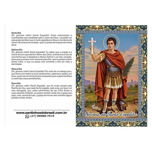 Santinhos da Novena de Santo Expedito - 10x14 cm 10.000 - Santinhos de Promessa Características Gerais do Produto: • Composição: Couchê Brilho 90 gr • Garantia: Havendo Defeito de Fabricação