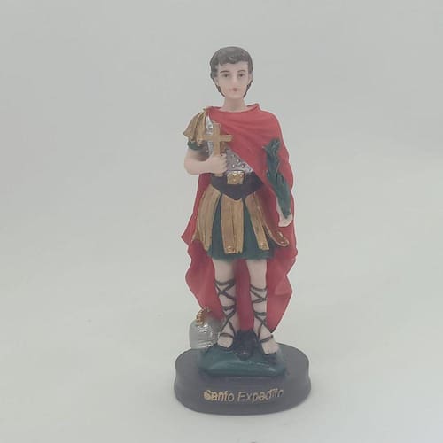 Perguntas frequentes: 1. Qual é o tamanho desta imagem de Santo Expedito? R: Esta imagem possui 15cm de altura.