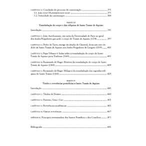 Este livro reúne uma série de documentos, em larga medida inéditos em língua portuguesa, sobre a vida, canonização, relíquias e títulos pontifícios concedidos a Santo Tomás de Aquino. Motivados pelas recentes comemorações de 700 anos de sua canonização (2023), 750 anos de morte (2024) e 800 anos de nascimento (2025), Bernardo Veiga e Paulo Faitanin traduziram e organizaram, num único volume que, deve-se dizer, representa a mais ampla e significativa documentação já publicada no Brasil a respeito do Santo Doutor , um sem-número de materiais biográficos, eclesiásticos e canônicos. A primeira parte contém relatos episódicos da vida do Doutor Angélico: como o sequestro realizado por seus irmãos, suas visões, resistência heroica na juventude e primeiros passos na vida intelectual e religiosa. Seguem-se três biográficas completas. A segunda parte do livro recolhe dos materiais do processo de canonização: comissões, bulas, instruções, testemunhos, e se encerra com a Redemptionem misit de João XXII e uma descrição da solenidade litúrgica da canonização. A terceira inclui materiais relativos à transladação do corpo de Santo Tomás. E a quarta, e última, lista todas os títulos e reverências pontifícias atribuídos a ele: Doutor Angélico, Doutor Comum, Patrono Celeste dos Estudos, Luz da Igreja, entre outros.