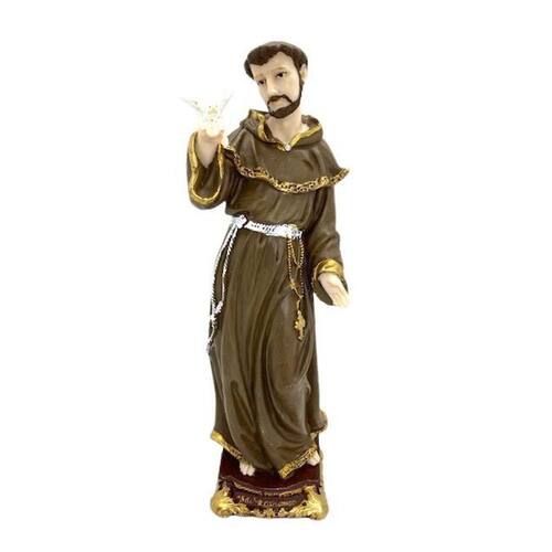Assis é o protetor dos humildes, dos animais e causas ecológicas. Além de servir como decoração, essa linda escultura em resina de alta qualidade, pintura artesanal e acabamento rico em detalhes pode ser um ótimo presente para homenagear pessoas especiais. Aplicação: decora sala, estantes, home office, altares, aparadores, mesa de canto ou escritório. É também uma ótima opção para presente, o excelente acabamento da pintura permite mais beleza e estilo para sua casa ou escritório. Especificações técnicas: Material: Resina Marca: Bialluz Presentes Ean: 7890003908471