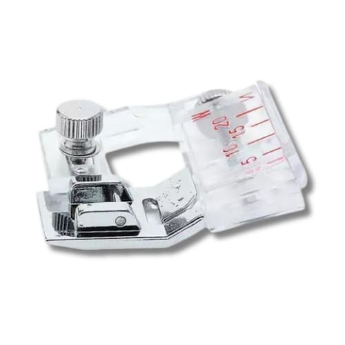 Guia e executa a colocação do Viés. A finalização da peça ficará muito mais simples e rápida com a utilização deste acessório. O calcador deve ser fixado na máquina de costura. Indicado para máquinas domésticas. Possui regulagem de 5 a 20mm.