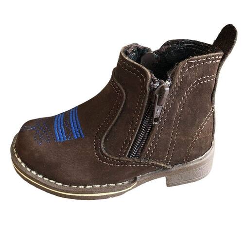 Este modelinho de calçado infantil para meninos está super em alta! Fechamento relâmpago na lateral da bota permite que a criança calce a botina sozinho,