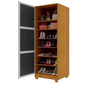 A Sapateira Gold vem para compor seu ambiente com estilo e praticidade, comportando seis prateleiras para melhor acomodação dos calçados, puxador perfil de aço e linda porta de espelho com três lâminas que confere maior beleza a peça, ela é a peça ideal para quem precisa otimizar espaço e ter um ambiente organizado.