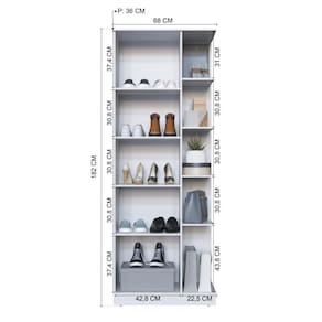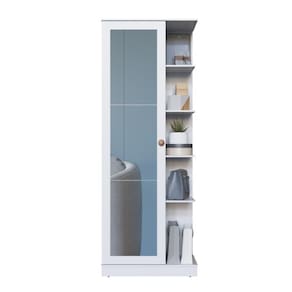 Sua estrutura em MDP de alta qualidade oferece resistência e estabilidade, enquanto as prateleiras internas e externas garantem excelente organização para calçados, acessórios, produtos de limpeza ou itens diversos. A porta com espelho de corpo inteiro agrega sofisticação e funcionalidade ao móvel, otimizando ainda mais o espaço.
