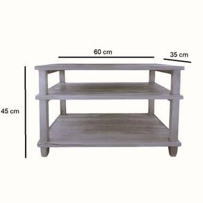 Sapateira 3 Prateleiras Madeira Maciça SAPATEIRAAlém do charme na decoração, esse ITEM também oferece uma funcionalidade essencial por conta de suas dimensões, no qual suas prateleiras podem ser usadas como espaços de armazenagem.Produzido 100% com madeira maciça selecionada e um acabamento com verniz especial, ele traz sofisticação e requinte, tornando qualquer ambiente mais agradável e receptivo. Características Técnicas:Altura: 45 cm;Comprimento: 60 cm;Largura: 35 cm; Informações Adicionais:Garantia: 90 dias contra defeitos de fabricação.