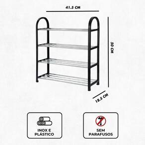 - Prateleira com 4 andares: Oferece amplo espaço para armazenar até 8 pares de sapatos ou outros itens.