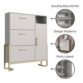 Sapateira P1062, prática e funcional para a organização dos seus calçados. Conta com estrutura em metal de 20 mm (pintura epóxi) e MDP 15 mm (acabamento FF - Finish Foil). Composta por gavetas basculantes com sistema de abertura articulável, própria para calçados comportando até 6 pares cada. Além de puxadores em alumínio, portal lateral para armazenamento e nicho para maior versatilidade. Produto será entregue em 02 volumes.